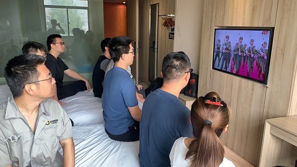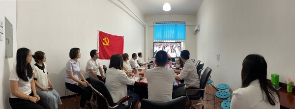同時,出差的黨員主動組織項目團隊在項目現場觀看大會直播盛況,感受大會現場的熱烈氛圍。