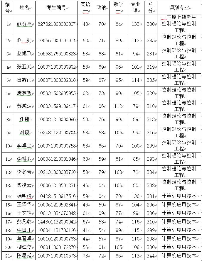 根據“北京機械工業自動化研究所2021年碩士研究生招生復試工作辦法”,現將北京機械工業自動化研究所2021年度碩士研究生入學考試復試名單公布如下: